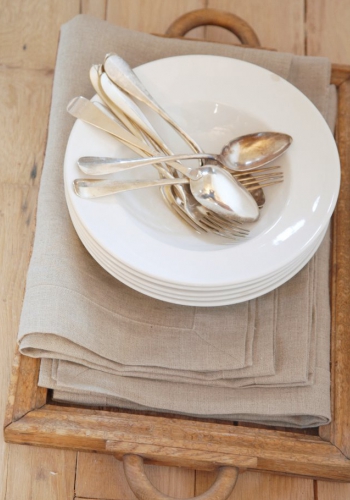 Keukenlinnen en tafelnappen (enkel op maat) in o.a. katoen,